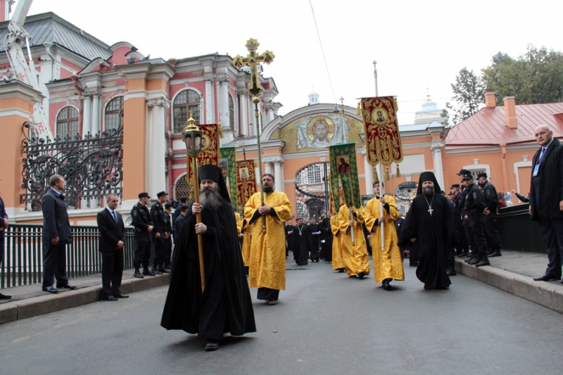Также на площадь прибыл и другой крестный ход от Казанского кафедрального собора Санкт-Петербурга. Литургию в главном храме северной столицы в этот день совершил ректор Санкт-Петербургской духовной академии архиепископ Петергофский Амвросий в сослужении епископа Царскосельского Маркелла и духовенства епархии.
